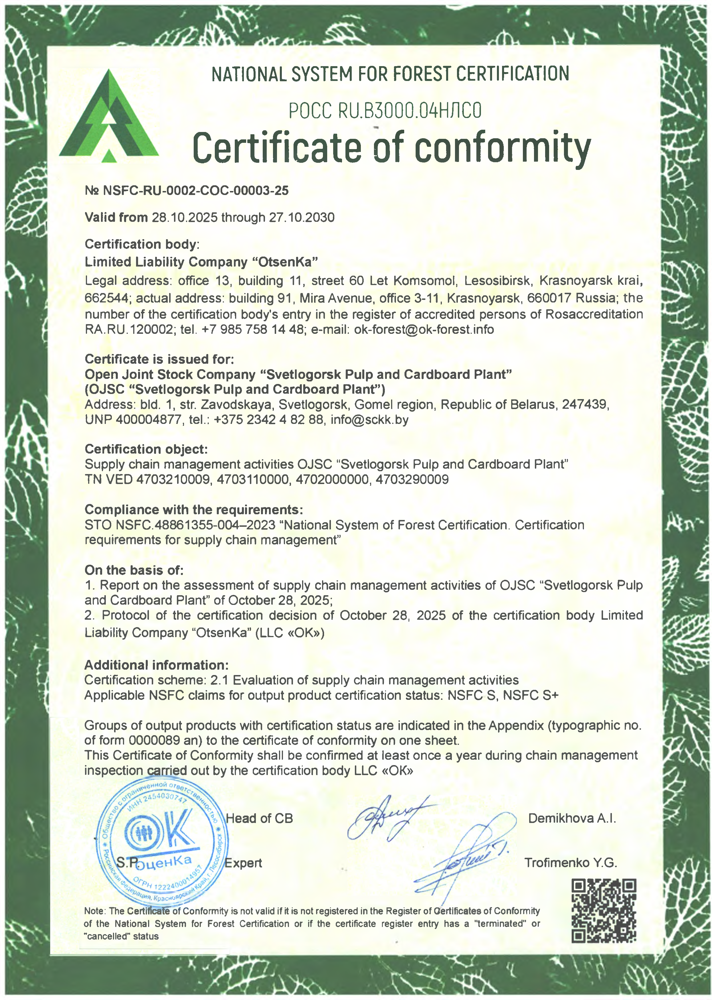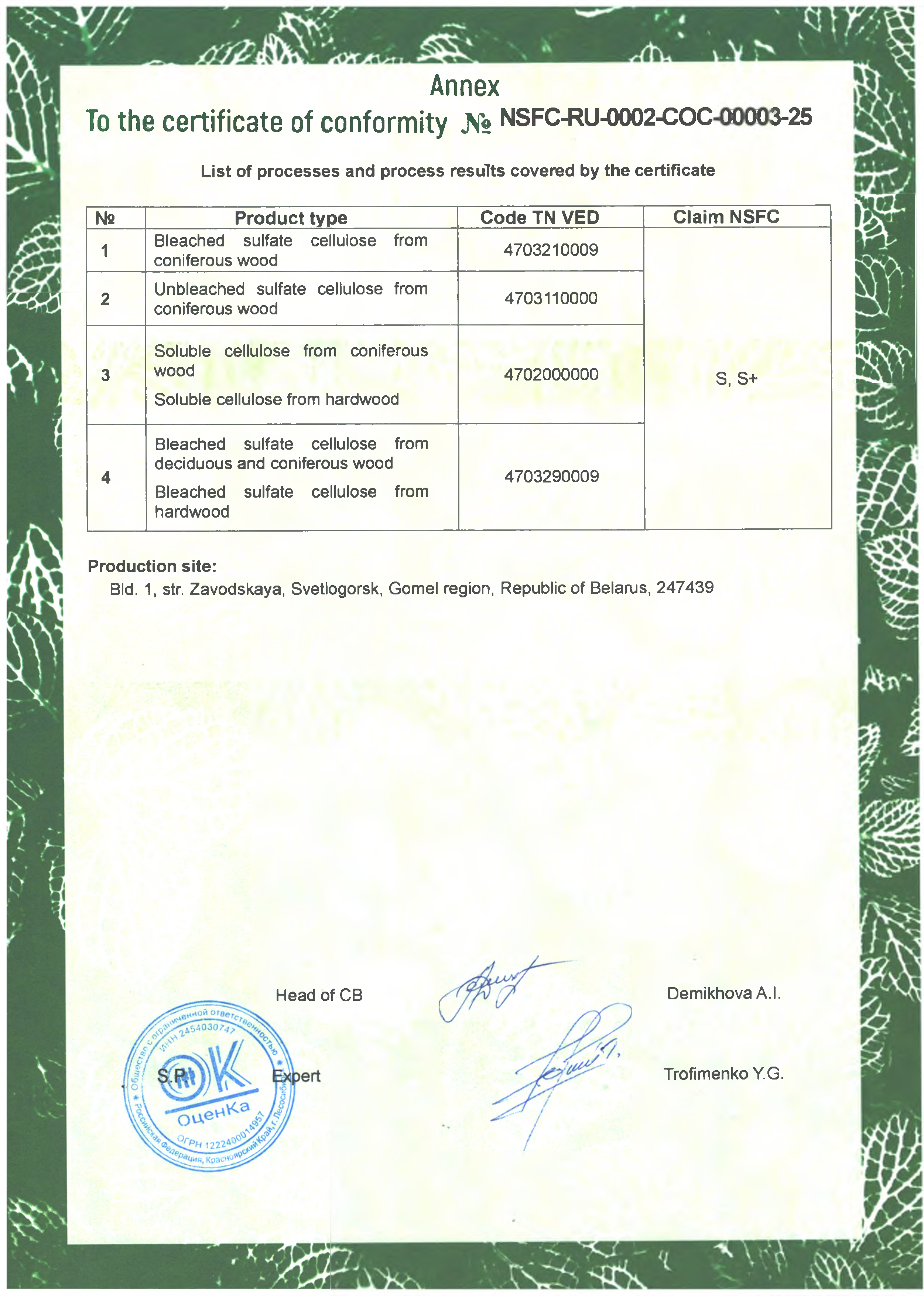 OPEN JOINT STOCK COMPANY SVETLOGORSK PULP AND CARDBOARD MILL REPUBLIC of BELARUS - SVETLOGORSK